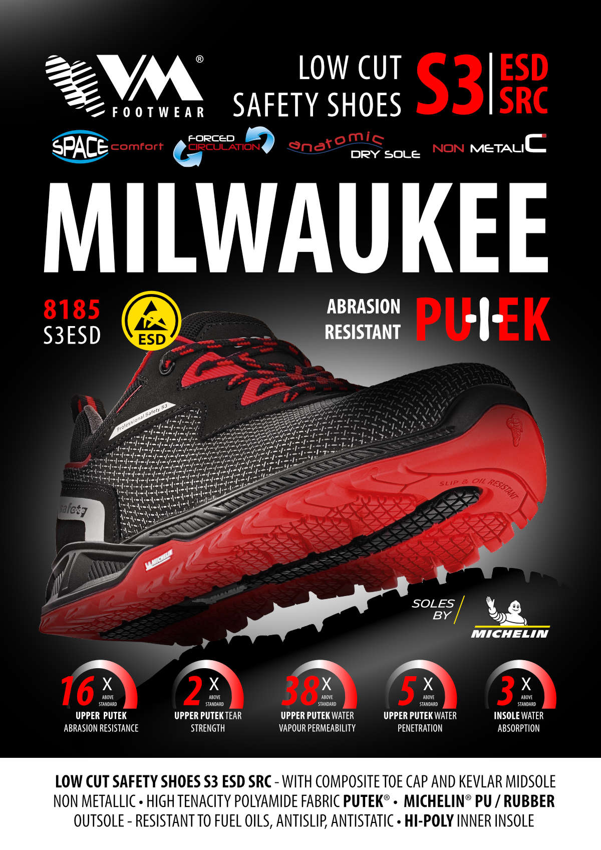 NORMA: – EN ISO 20345:2011, EN ISO 61340-5-1:2016, S3 SRC ESD