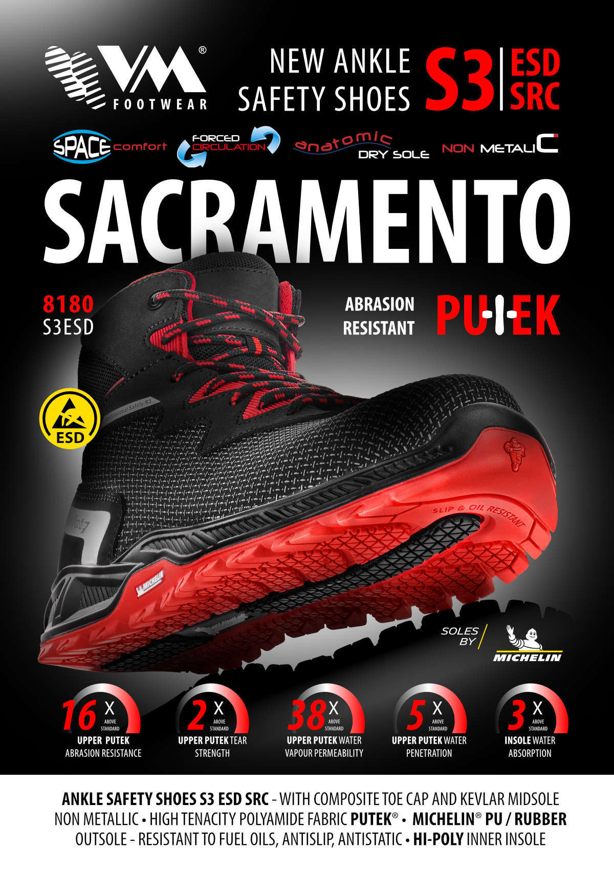 NORMA: – EN ISO 20345:2011, EN ISO 61340-5-1:2016, S3 SRC ESD